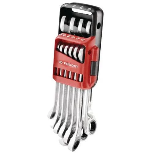 Includes: 10 combination ratchet spanners: 8 – 10 – 11 – 12 – 13 – 14 – 16 – 17 – 18 – 19 mm and 1 case.