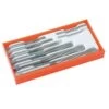 - Set of five files with varnished wooden handles for general and automotive mechanics.