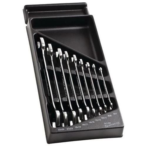 9 wrenches 6 x 7 – 8 x 9 – 10 x 11 – 12 x 13 – 14 x 15 – 16 x 17 – 18 x 19 – 21 x 23 – 22 x 24 mm.