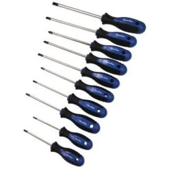 - Set of 10 slotted, Phillips and Pozidriv screwdrivers.