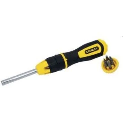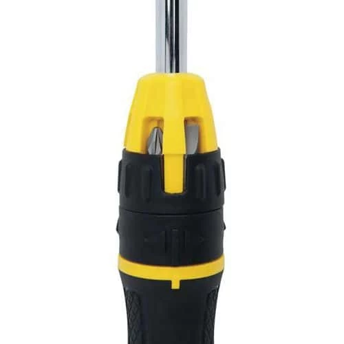 - Dynagrip® ratchet screwdriver with bit holder and a rust-proof chrome blade.